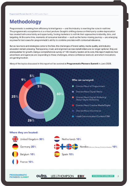 The 2025 Leaders Report reveals how advertisers and agencies are adapting to cookie deprecation, evolving data strategies, and shifting consumer behaviours. Featuring insights from 100 industry leaders, it explores key challenges around trust, transparency, and innovation shaping the future of programmatic advertising.
